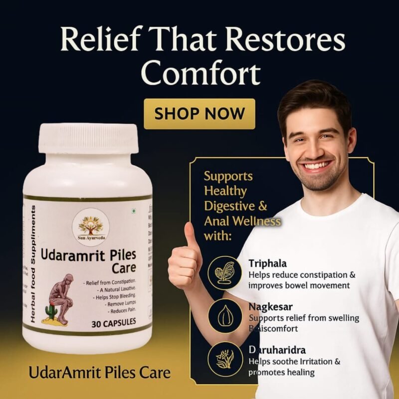 Ancient Strength, Naturally RevivedRediscover the forgotten secrets of vigor, stamina, and masculine power with Sun Ayurveda Testosterone Booster Capsules — a time-honored blend of powerful Ayurvedic herbs, crafted under modern scientific standards.UDARAMRIT PILES CARE