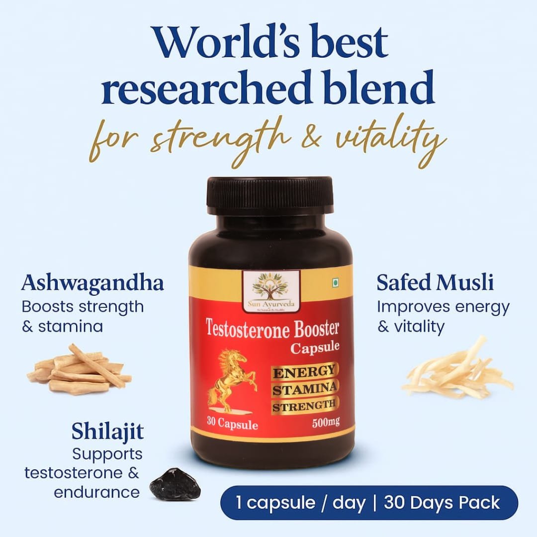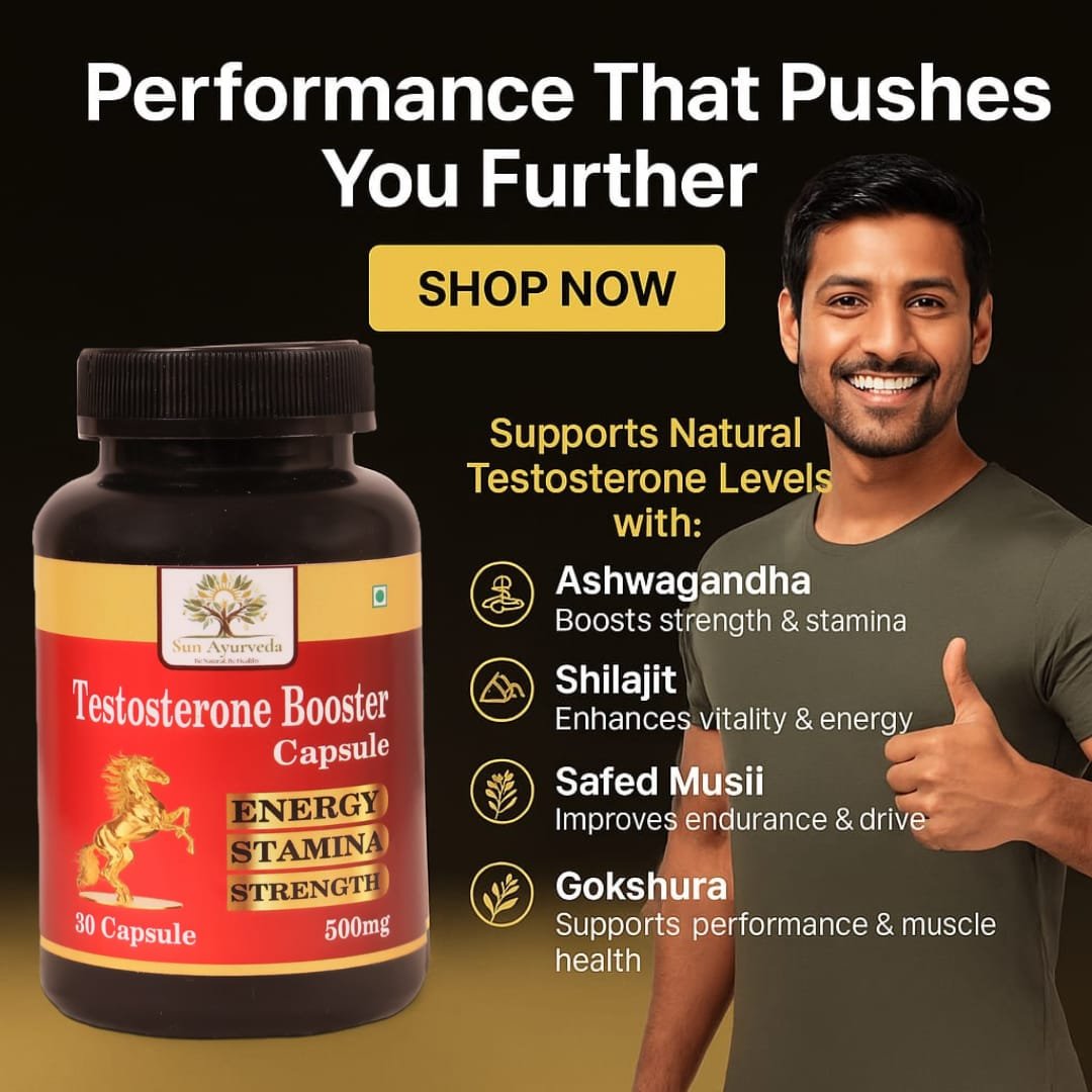 Boost your testosterone levels naturally with Testosterone Booster — a premium Ayurvedic formula by Sun Ayurveda.